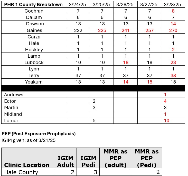 - Expanded Vaccination Clinics: Vaccination clinics are operating in Lubbock and Seminole to provide the MMR vaccine, a proven and effective protection against measles.